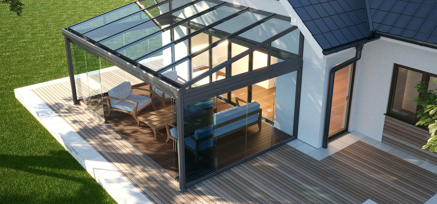 Terrassenüberdachung Glas, 7,06 m x 3,50 m